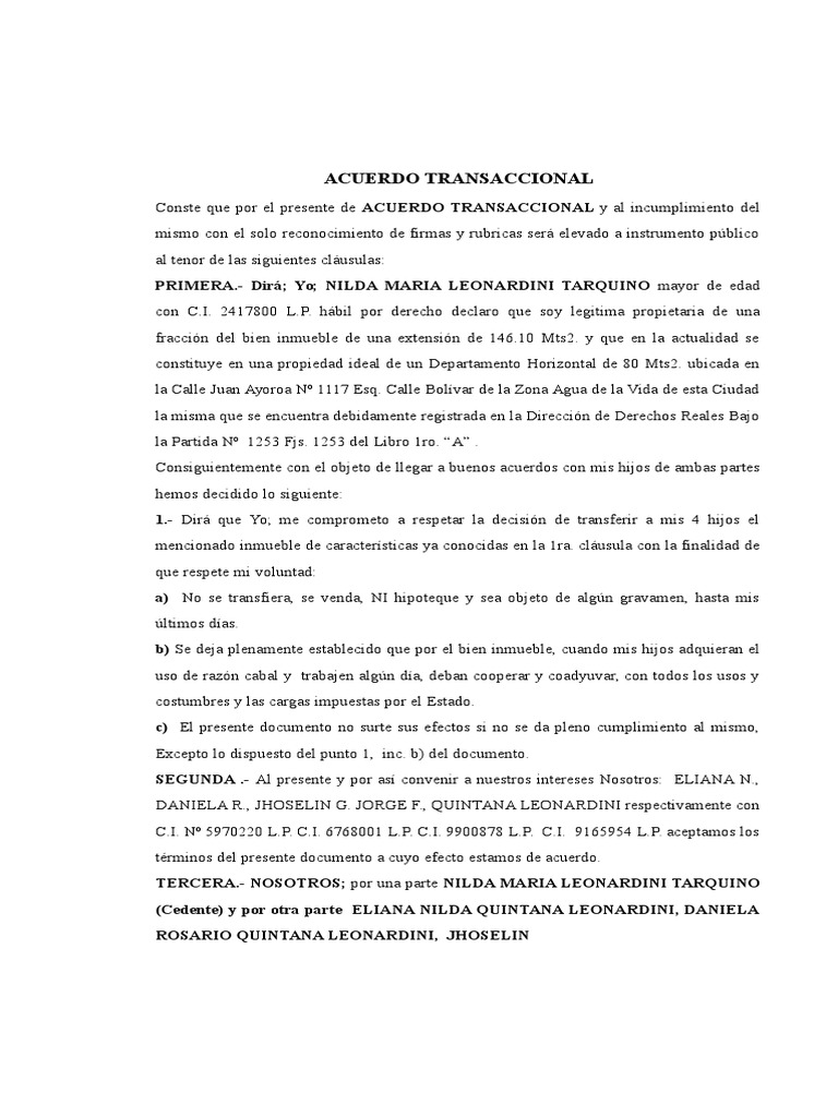 Acuerdo Transaccional Pdf Descargar Libre