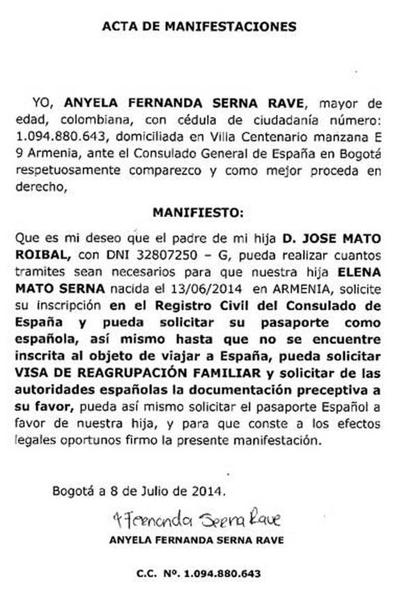 Acta De Manifestaciones Para Ingresar A Espana Como Familiar De Comunitario Legalizados